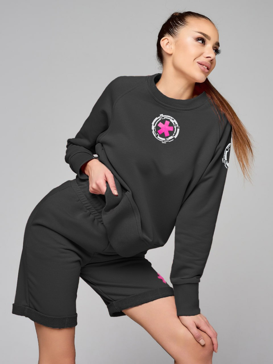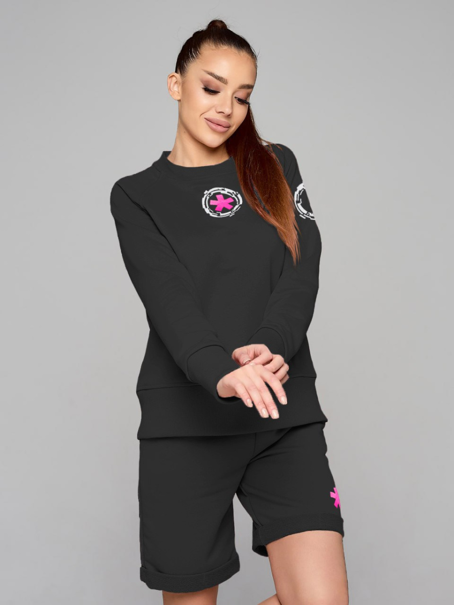 Этот стильный комплект одежды прекрасно подходит для активной и модной женщины. Он сочетает в себе комфорт и функциональность спортивного костюма, а также легкость и свободу летних нарядов. Этот спортивный костюм женский, в котором вы будете чувствовать себя уверенно и стильно в любых условиях. Комплект состоит из шорт и свитшота.